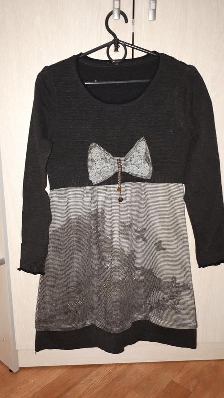 Платье тепленькое. носила девочка-подросток. подойдет и не на подростка. бани спереди по желанию можно убрать. В комплекте идет график можно носить как с ним так и без него. Носила дочка мало, поэтому состоянии прекрасное. размер 42-46. фасон можно носить как и свободный так и более при теле.
