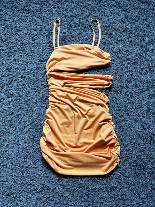 Женское летнее платье оранжевого цвета с разрезами от SHEIN, размер С.