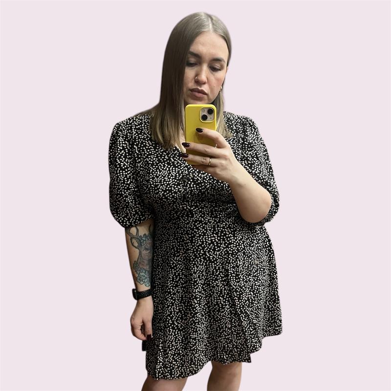 Женское платье из вискозы от George в отличном состоянии. Подойдет на размер M-L, смотрите по замерам. Имеет укороченные объемные рукава. Расклешенная к низу. Состав: вискоза 100% Длина от плеча 86 см ПОГ 47 см ПОТ 39 см, тянется до 45 см Бедра свободно, +-60 см Переходите и подписи на страницу, еще есть женские вещи по доступным ценам🌸 Подписчикам скидка😉