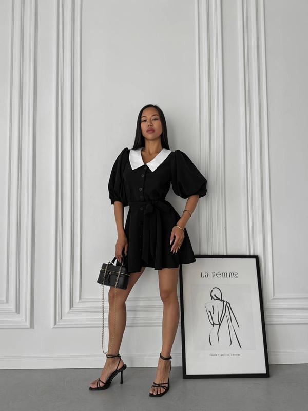 Жіноча сукня коротка з білим комірцем з гудзиками з коротким рукавом чорна 250