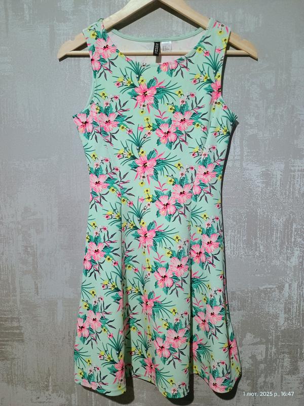 Короткое летнее платье. Приталенная, низ свободный. Широкие бретели, без подкладки. Состав: полиэстер 96% эластан 4% Длина 80см, талия 31см, грудь 38см, бедра 50см. Сток, состояние нового, без этикетки!