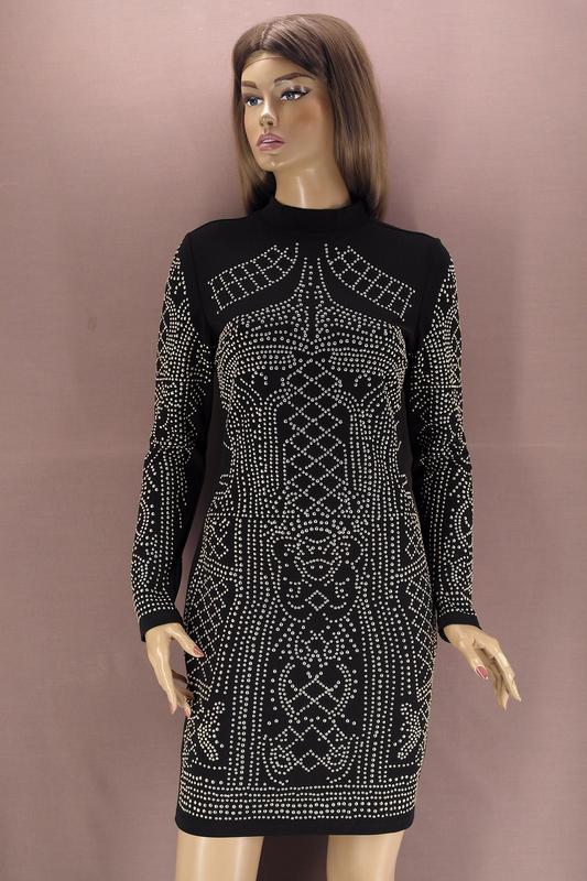 Брендовое облегающее платье "Coolcat" с золотистым декором. Размер M/L. Застёгивается сзади на потайную молнию. Состав: 95% полиэстер, 5% эластан. Размер указан L, подойдёт и на M. Замеры в нерастянутом виде (ткань тянется): -ПОГ - 44 см; -ПОТ - 37,5 см; -ПОБ - 46 см; -длина рукава - 62 см; -длина платья - 90 см. Без дефектов. В отличном состоянии! *Рост манекена, на котором сделано фото - 185см.