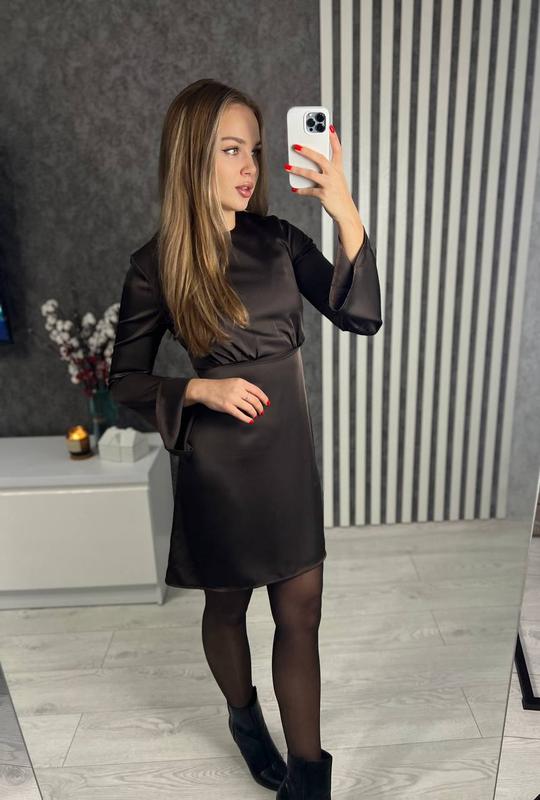 Платье Ткань дабл Армани Цвет черный, шоколадный Размер 42,44,46,48 Платье из плотного шелка «Армани», красиво ложится по фигуре, рукав расширен к низу, сзади застегивается на молнию Цена: 620 грн