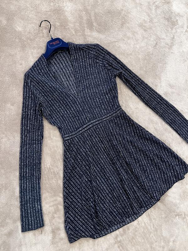Платье Zara темно синего цвета с люрексовой нитью, V подобный вырез, сбоку на молнии, есть подклад 📍Размер - S 📍Длина- 82 📍Пог- 44 📍Пот - 32 📍Рукав - от горловины-74