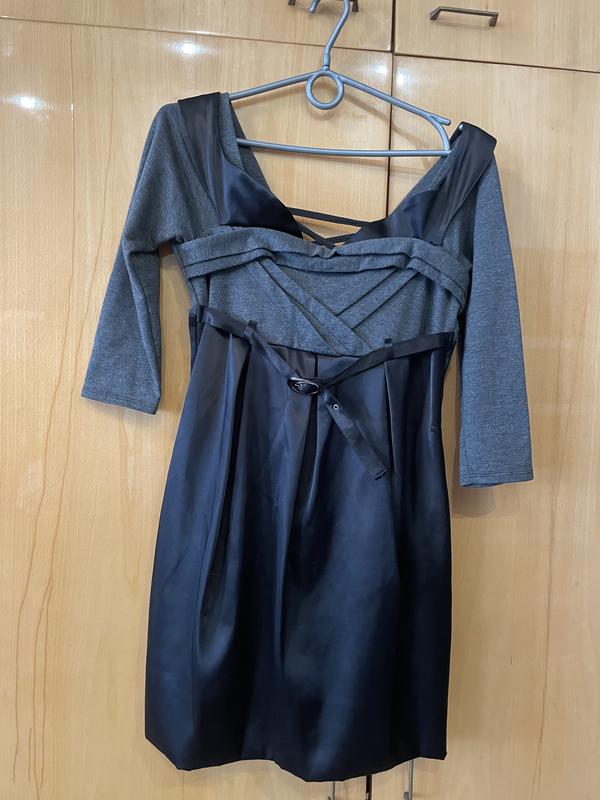 Платье женское, размер S. Приталенная, верх серый, качественный плотный трикотаж, красиво подчеркивает грудь, с завязками на спине, смотрится очень привлекательно. Низ платья черный, плотный, на подкладке, тонкий ремень подчеркивает талию. Можно использовать как коктейльный и и офисный вариант. Можно отправить по любой почте или передать в Киеве лично.