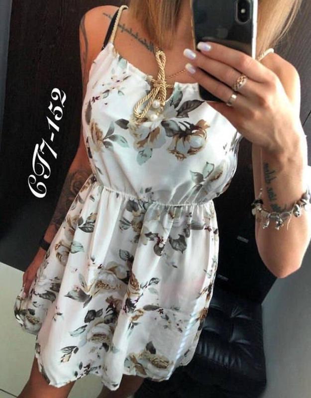 Производство -Фабричный Китай Летний сарафан. Очень легкий и нежный Ткань - Креп шифон. Размер один 42-44 Длина сарафана ( без учета бретелей ) - 77 см Полуширина в талии 33см Тянется резинка до 45см Полуобьем груди - 45см