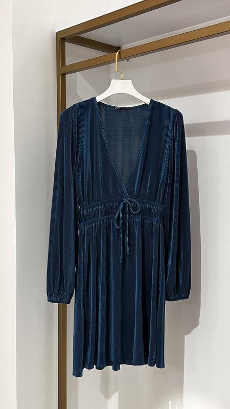 Сукня ZARA, глибокого ізумрудного кольору з довгим рукавом. Розмір М Тканина гофре