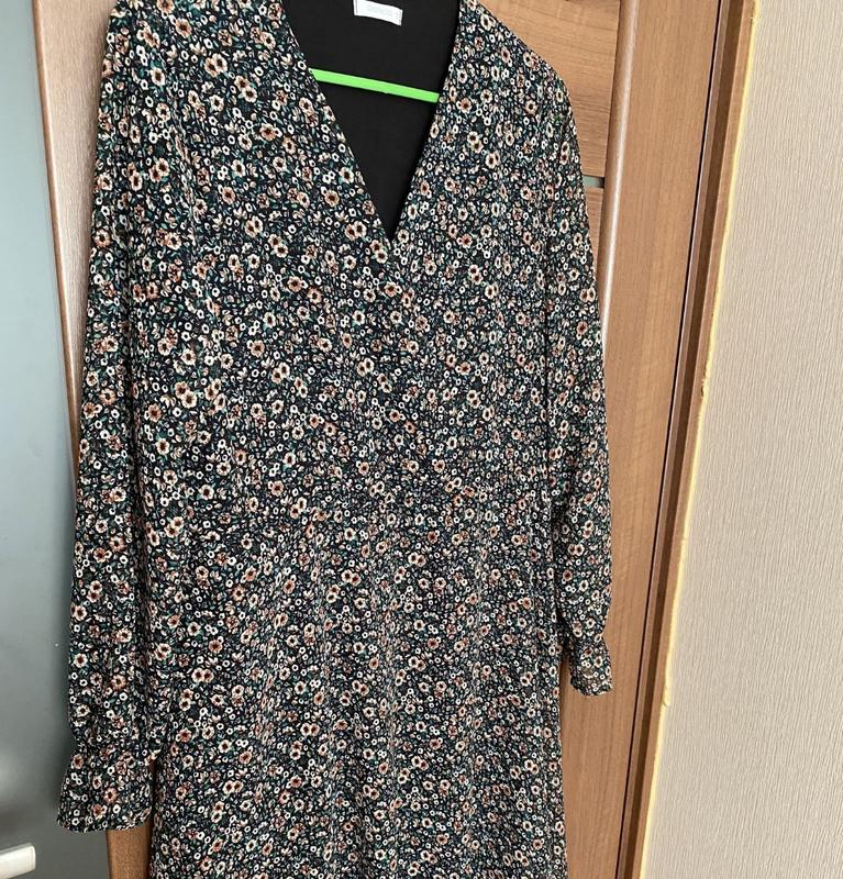 Легкое шифоновое платье в цветочный принт. Декольте на пуговицах, под грудью есть поясок вшитый Размер С, но будет и на М Состояние нового, без дефектов