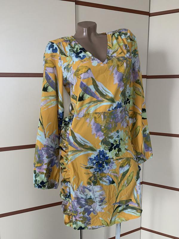 Необычайно красивое платье, размер М-L(указанный M) по бокам доапировка, подзади замок, ткань тянется.