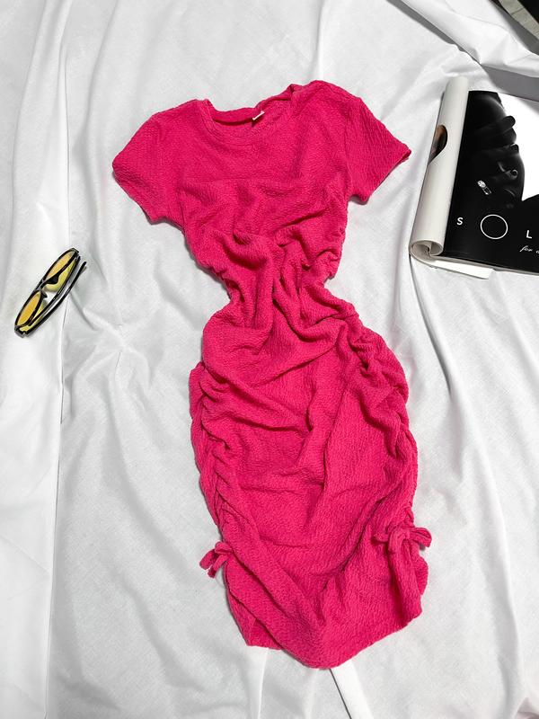 Яркое платье со стяжками 😍 Приятная мягенькая ткань, хорошо тянется Размер по факту С-М Замеры Плечи 36-38 см Грудь 38-46 см полухват ткань тянется Талия 35-45 см Бедра 42-50 см Длина регулируется ( можно 90 или короче до 70 см, с помощью затяжек сбоку ) Состояние новой вещи