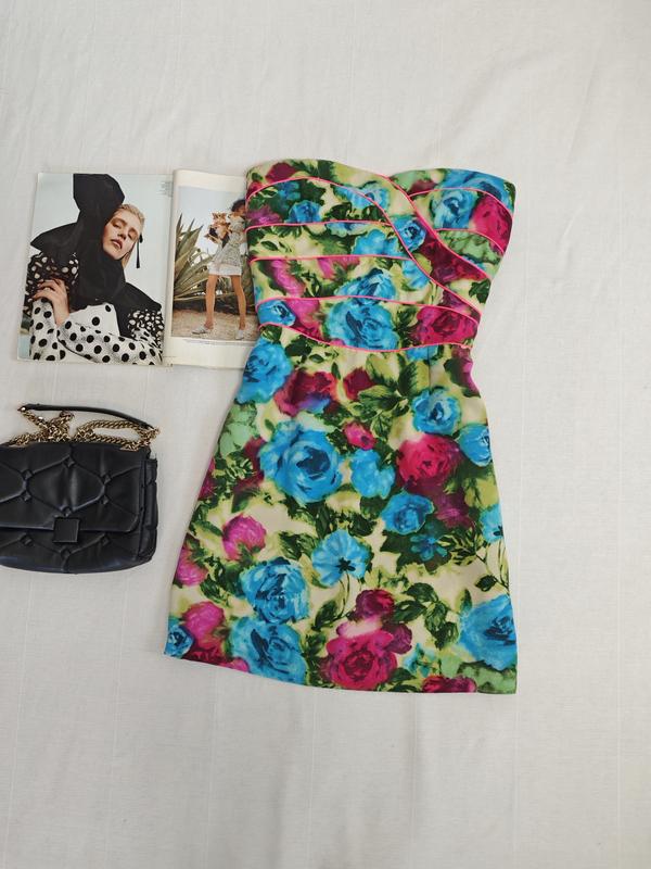 платье в цветы от Sandro с подкладом, ткань полиэстр, ПО груди 40 см, талия 37 см, бедра 49 см, длина 73 см