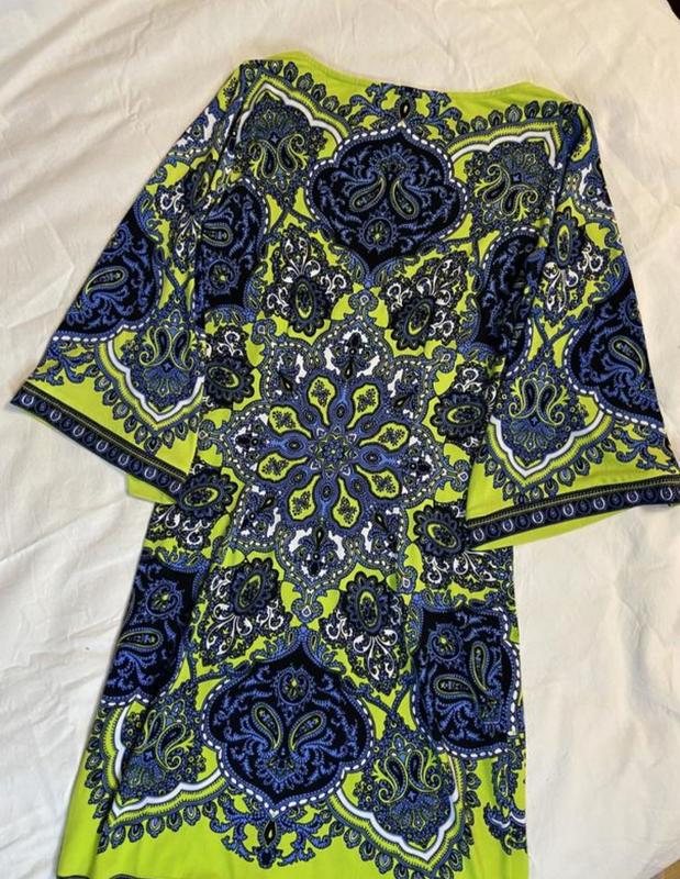 Платье из яркой трикотажной ткани, полиэстр, тянется красиво. на фото фигура р. 50. лучше будет сидеть на 46-48. есть маленькое бледное пятно, на последнем фото показала 🎒👢👗👚👖👙 Посмотрите другие мою объявления, разгружаем собственный шкаф, много женской и детской одежды, белья и обуви. является безопасная оплата, Укрпочтта, Новая почта, розетка. Подписывайтесь на обновление