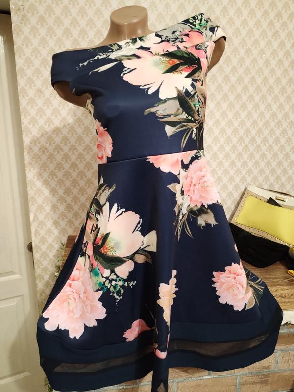 Платье в цветочный принт, спереди укороченное