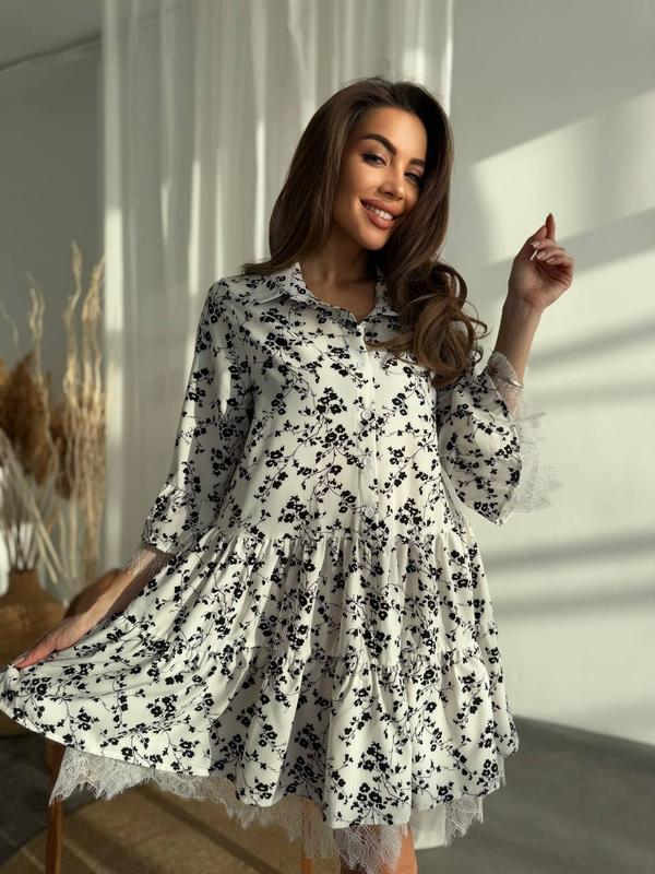 Платье с кружевом ▪️мод: 340 ▪️ткань: софт и кружево ▪️размер: 42-44 и 46-48 ▪️цвет: белый и черный Нежные кружева, рюши, цветочный принт, делают это платье невероятно женским, в этом платье ваш настроение будет на все 100% прекрасным и легким 🥰 Есть видео обзор