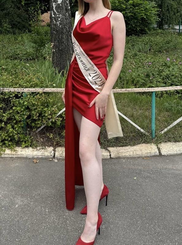 •Элегантное атласное платье с шлейфом на одну сторону. Облегающий силуэт отлично подчеркивает фигуру. •Оделась только один раз • размер xs-s ( замеры девочки на фото 86-65-91 ) • На сообщение могу не ответить поэтому лучше звоните по номеру: ********** (можно отправить после оплатой )