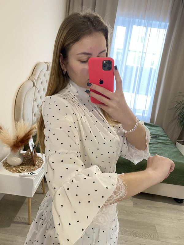 Платье белое мини в горошек