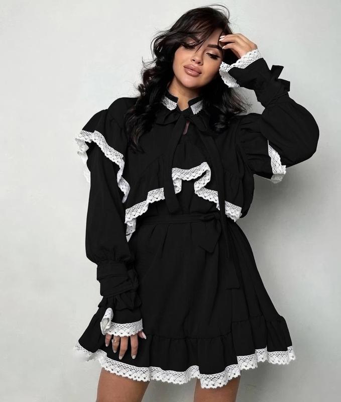 Платье с кружоном🕊 🔔 🍂 Модель 500 ▫Тканина: софт+кружева ▫Размерный ряд:42-52 ▫Цвет: черный 🏷849 грн Невероятное платье с кружевом и пояском, которое идеально впишется в твой гардероб 🕊 Минималистичная и в то же время очень нарядная💗 Именно то, что ты ищешь🤤