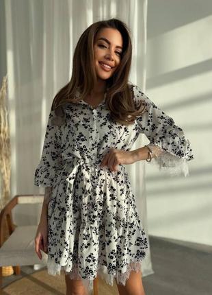 Платье с кружевом ▪️мод: 340 ▪️ткань: софт и кружево ▪️размер: 42-44 и 46-48 ▪️цвет: белый и черный Нежные кружева, рюши, цветочный принт, делают это платье невероятно женским, в этом платье ваше настроение будет на все 100% прекрасным и легким