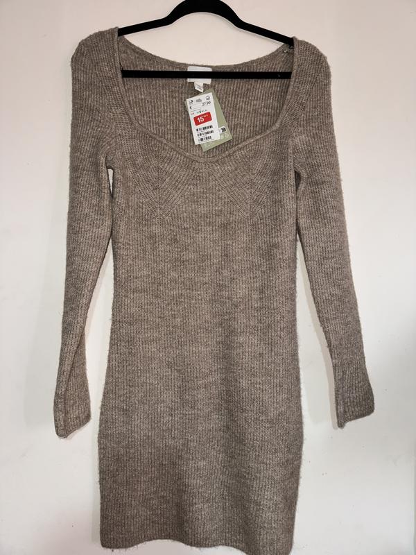 Нова сукня, без дефектів, з бірками. Добре тянется. Довжина 88, рукав 65, напів обхват груди 40, напів обхват талії 35, напів обхват стегон 42 Характеристики товару: Артикул: 298546802 Силуетна з довгим рукавом, без кишень, V-образний виріз, приталена, меланж Склад: 52% поліестер, 41% акрил, 4% вовна, 3% еластан Країна виробництва: М'янма Країна бренду: Швеція