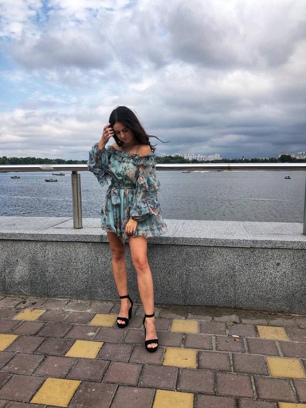 Очень красивый шифоновый комбинезон Объемные рукава Открытые плечи Шорты с подкладкой Размер хс-с Идеальное состояние