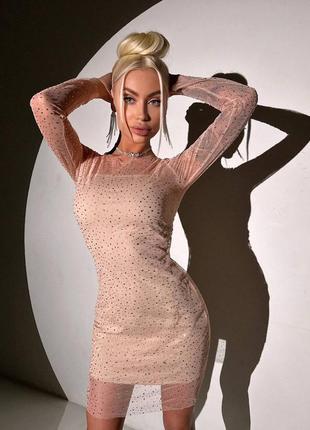 Безопасная оплата Наложенный платеж по подписке 200грн. Проверяйте товар на брак на почте и если таковой оформляйте акт.Дома брак не рассматривается! Обмен и возврат в день получения посылки Платье мини с сияющими стразами ▫️ткань: сетка со стразами, трикотажная подкладка ▫️размер: S и М (L + 200 грн)