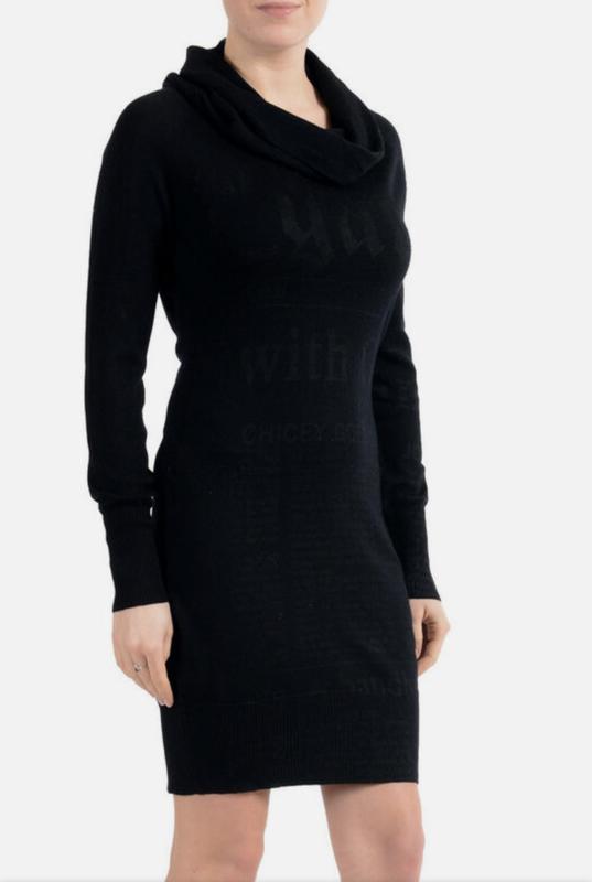 Оригинальное платье- свитер, туника премиум бренд Galliano, насыщенный черный цвет, 100./‘ шерсть, трикотаж плотный, ребристый трикотаж на манжетах, воротнике и внизу с добавлением люрексовой золотистой нити, ворот фактурный высокий, внизу на платье лого бренда, размер s- см замеры на фото,длина 72 см, трикотаж тянется,