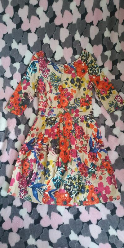 Нарядное короткое платье бежевое в цветочный принт р.xs