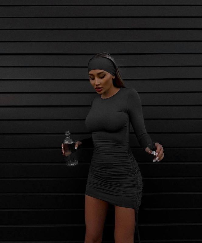 🪩Сукня на затяжках❤️🔥 Кольори: - барби - черный - шоколад - графит - електрик - белый - малина ➡️Мод. 1142 ➡️Размеры: 42-44, 44-46 ➡️Ткань: качественный микродайвинг (не скатывается, ткань очень красиво тянется) Длина 87см (регулируется)