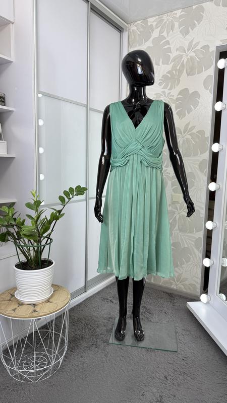 Очаровательное зеленое платье из 100% шелка от John Lewi*s, р. 18. Платье в идеальном состоянии. Без дефектов. Тканина 100% шовк. Сзади платье имеет молнию. длина 107 см. груди 110 см. талия 90 см. стегна 124 см.