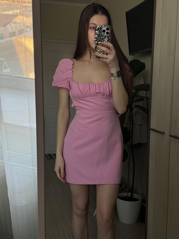 Укороченное трендовое платье с открытой спиной