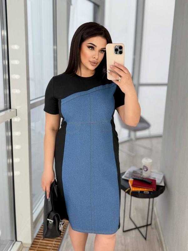 🌸🌺𝓝𝓮𝔀 𝓬𝓸𝓵𝓵𝓮𝓬𝓽𝓲𝓸𝓷 🌸🌺 🗣⚫️ ⚫️⚫️⚫️⚫️⚫️⚪️⚫️⚪️⚪️ ■ Сукня ■ Модель 0438 ■ Цена 840 грн ■ Тканина: трикотаж / джинс ■ Цвет: основа черная,джинс ■ Размер: 42-44,46-48, 50-52 ■ Описание: Платье на изображении представляет собой стильное и современное изделие, выполненное из комбинации материалов. Описание: Фасон: платье имеет приталенный крой, подчеркивающий фигуру. Длина платья доходит до колен. Материал: Верхняя часть платья выполнена из черного трикотажа, а основная часть – из светло-синего джинсового материала. Цветовая палитра: Комбинация черного и светло-синего цветов, что делает платье универсальным и подходящим для различных случаев. Это платье подходит для повседневной носки и для неформальных мероприятий. Его можно сочетать с кедами для повседневного образа или с каблуками для создания более элегантного стиля.