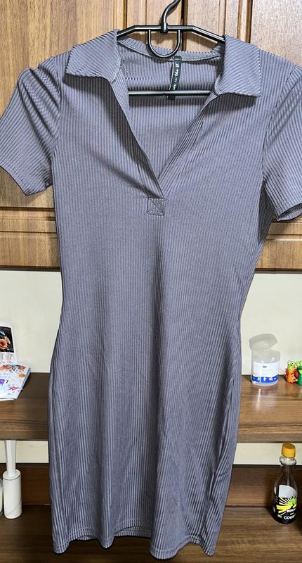 Летнее женское платье, с коротким рукавом в рубчик Серая Размер С