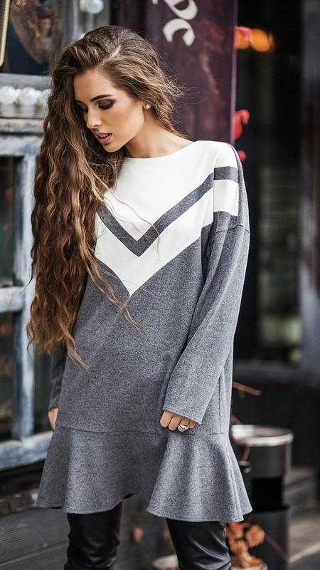 Платье необычного свободного кроя, очень стильное, для настоящих модниц. Выполнено из мягкой и теплой ткани. Код товара 11749