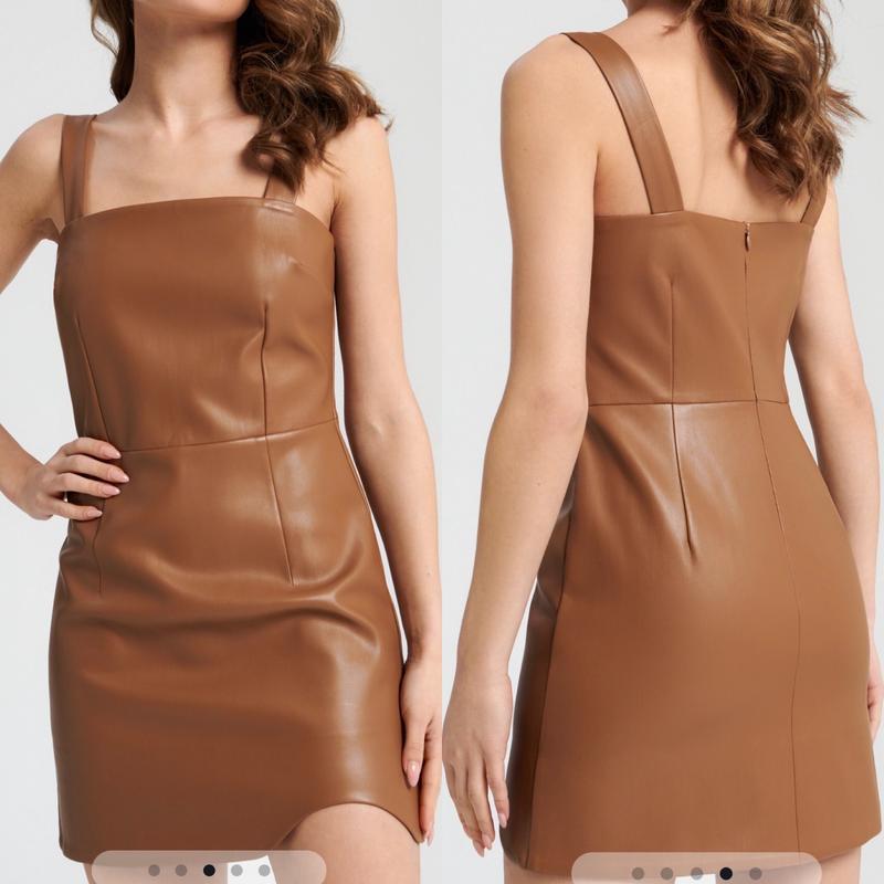 Мини-платье из искусственной кожи ✔️Размер S ✔️Длина 60 см ✔️На спине застежка ✔️Широкие бретели ✔️Мягкая искусственная кожа