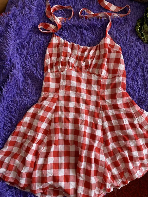 Платье сарафан в клетку на резинке на завязках