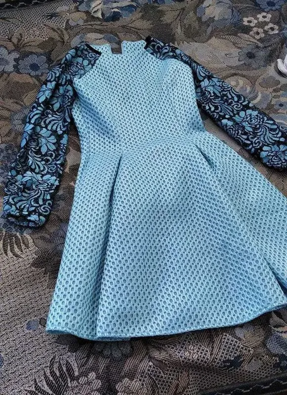 симпатичное платье голубого цвета на застежке сзади, материал плотный в идеальном состоянии