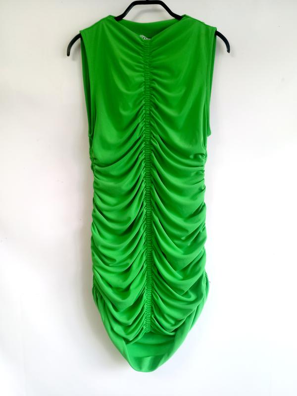 короткое драпированное платье ярко салатового цвета от Zara. По бирке размер s