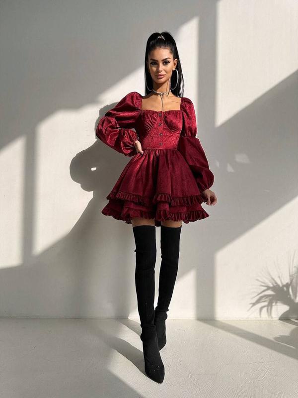 Корсетное платье с пышной двойной юбкой и рюшами 2490 🎩 ▫️ціна: 2170рн ▫️тканина: жаккард ▫️размер: S и М ( L + 200 грн)