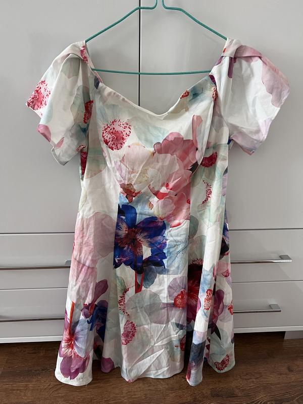 Новое платье британского бренда Coast. Данный бренд специализируется на платье для подружек невестных, матери невест. Поэтому это платье можно и на свадьбу надеть, и на день рождения, и просто быть красивой для себя. Оно очень красиво садится по фигуре - плечи опущенные, красиво ложится по плечам, не сползает, потому что просиликонен край платья. Платье из коттона, имеет подъюбник, который из полиэстера. Размер М, Л, не большая ХЛ.