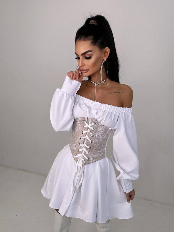 Приталенная рубашка + кружевной корсет или отдельно, платье с корсетом, платье с открытыми...