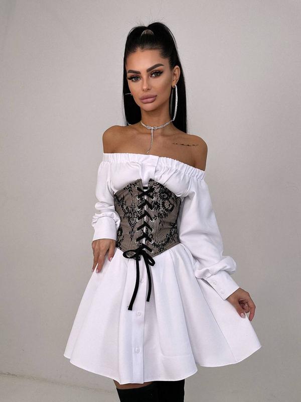 Приталенная рубашка + кружевной корсет или отдельно, платье с корсетом, платье с открытыми...