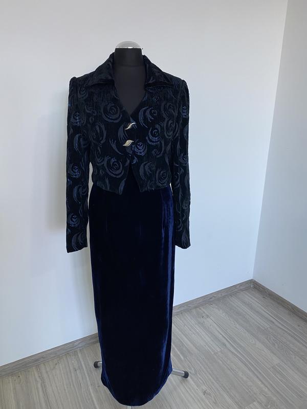 Вечерний костюм, состоит из длинного платья с пиджаком.
