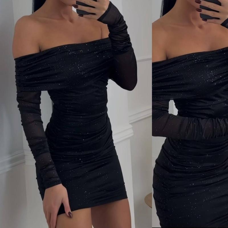 ▪️модель 2362 ▪️тканина : дорогий трикотаж люрекс ▪️цвет: черный ▪️размер: 42-46 (one size) Сияющее мини платье с обнаженными плечами💫 Качественная плотная ткань с напылением люрекса (не сыпется) Супер качество🫶🏼 Параметри (добре тягнеться) ОГ: 86-96 см ОТ: 64-73 см