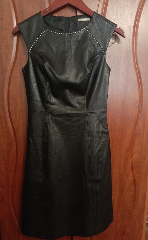 Платье из штушной кожи, на подкладке. Верх расшит бусинами (есть запасные). По спине застегивается на молнию. Бренду Orsay. Замеры: Плечи - 37 см. ПОГ - 42 см. ПОТ - 34 см. ПОБ - 43 см. Длина платья от плеча - 88 см. Состояние новой.