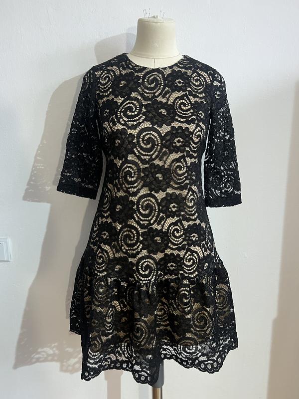Платье 42 размера Черное плотное кружево с бежевой подкладкой В хорошем состоянии Размер манекена: ог-88, вот-70, ос-92
