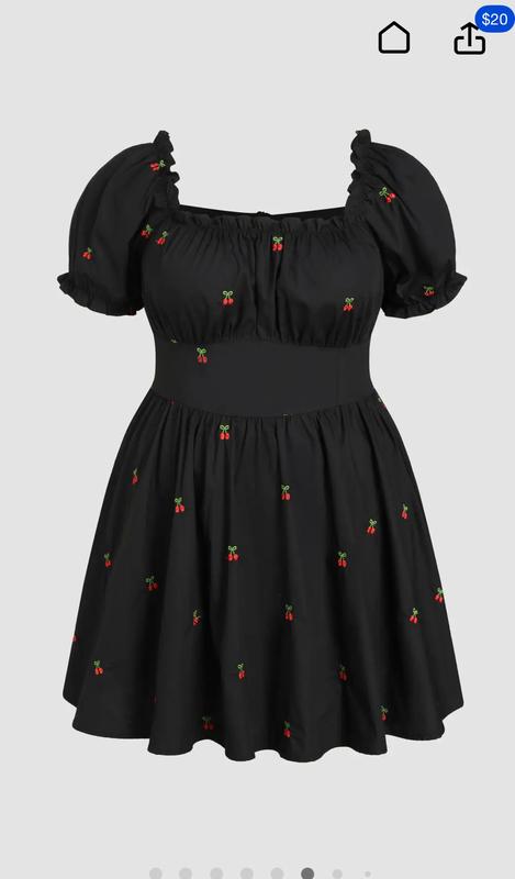 Міні сукня з рукавами буфами чорного кольору від американського бренду Cider. Оздоблена маленькими вишитими вишеньками. Ліф корсетного типу, завищена талія, довжина міні. Без підкладу. На спині потаємна блискавка. Склад 100% бавовна. ПОГ до 100 см ПОТ 48 см ПОС вільно Довжина 69 см Довжина рукава 20 см Абсолютно нова! З паперовою біркою!