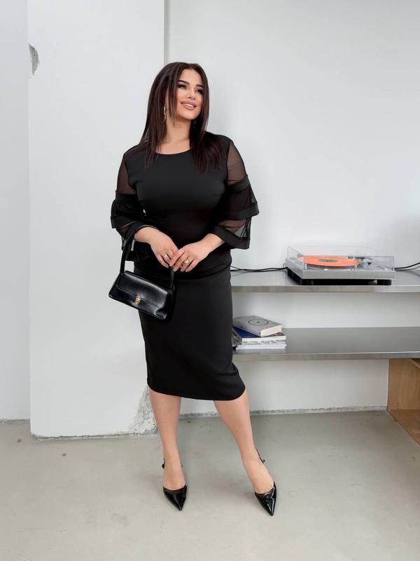 ⬆️НОВИНКА Сукня Реал фото ▪Модель : 1299❤️295 ▪Тканина: костюмка ▪Цвет: черный / эвросетка ▪Размер: 42-44,46-48,50-52,54-56