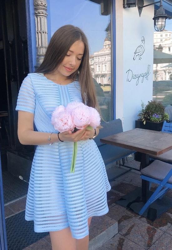 Новое фактурное платье, модная новинка этого сезона. Платье голубого цвета сочетается с кофтой синего оттенка. Платье пошито из качественной ткани. Код товара 11483
