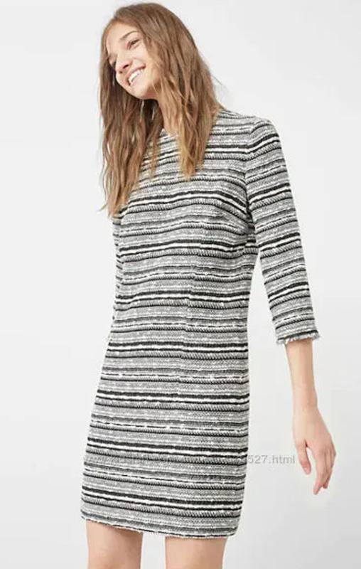 Новое с биркой платье Mango (пролет заказа с официального сайта). Размер М. Длина от плеча - 86 см., Длина рукава - 46 см., Ширина плеч - 38 см., Длина от подмышки до низа - 65 см. Хлопковая жаккардовая ткань. Смугастий дизайн. Кругла шия, Рукав 3/4. Скрытая застежка-молния на спине. Внутренняя подкладка