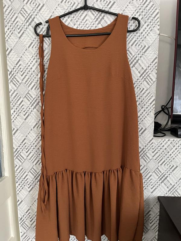 Літня сукня кольору теракоти. Стильна сукня приємного теракотового кольору, яка стане ідеальним вибором для літа! ✨ Опис товару: Матеріал: легка, натуральна тканина з легкою фактурністю, що чудово дихає та комфортна у носінні. Фасон: вільний крій, який не сковує рухів, з розширеним низом та невеликими збірками. Деталі: плетений пояс на боці додає оригінальності образу. Розмір: підійде на М та L Стан: відмінний. Ця сукня ідеально підійде для прогулянок, відпочинку та спекотних літніх днів. Поєднується як із сандалями, так і з кедами.